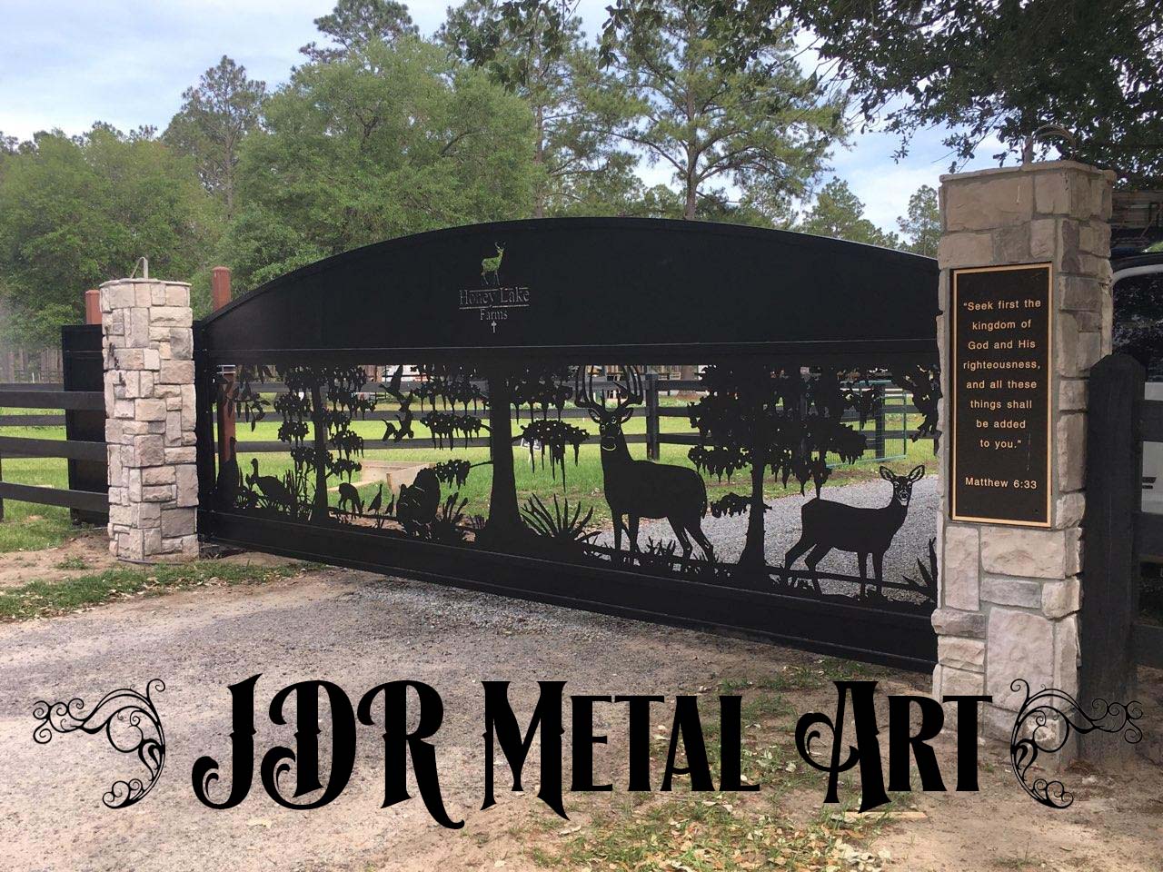 Aluminum Driveway Gates Tallahassee Florida by JDR Metal Art Deer Turkeys SwampBy JDR Metal Art / October 3, 2025